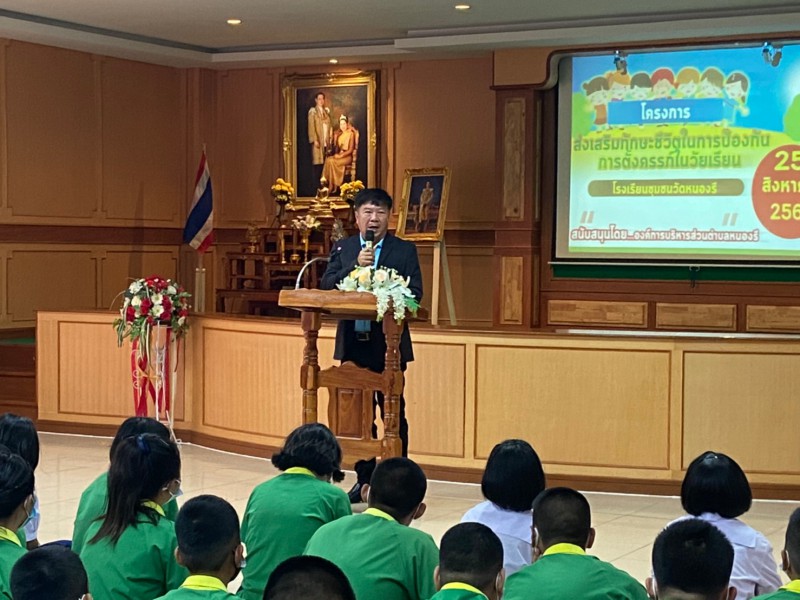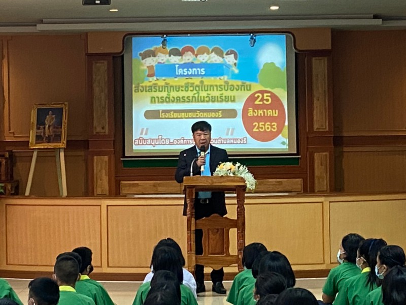 วันอังคารที่ 25 สิงหาคม 2563 องค์การบริหารส่วนตำบลหนองรี ร่วมกับ โรงเรียนชุมชนวัดหนองรี จัดอบรมโครงการส่งเสริมทักษะชีวิตในการป้องกันการตั้งครรภ์ในวัยเรียน ให้แก่นักเรียนชั้นมัธยมศึกษาปีที่ 1-2 โดยมีนายสุนทร ตันติโภคากุล นายกองค์การบริหารส่วนตำบลหนองรี เป็นประธานในพิธี วิทยากรในวันนี้คือ นางสาวณัฐกาญจน์ อุปฌาย์ ผู้ช่วยนักวิชาการสาธารณสุข สำนักงานสาธารณสุขเทศบาลนครแหลมฉบัง มีวัตถุประสงค์เพื่อให้นักเรียนมีความรู้ความเข้าใจเรื่องเพศศึกษา และพัฒนาการของตนเองเมื่อเข้าสู่วัยรุ่น และทักษะในการจัดการกับสถานการณ์ที่เกี่ยวข้องกับเรื่องเพศได้ ณ ห้องประชุมขุนประนนท์อนุสรณ์ 1 โรงเรียนชุมชนวัดหนองรี |