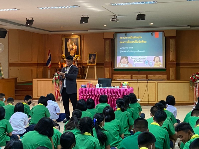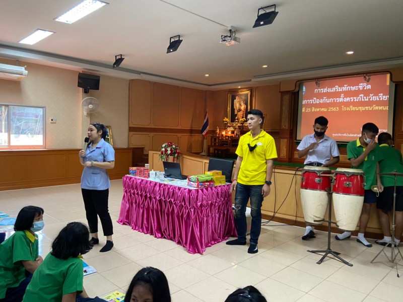 25 สิงหาคม 2563 อบรมโครงการส่งเสริมทักษะชีวิตในการป้องกันการตั้งครรภ์ในวัยเรียน